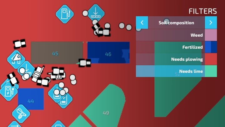 You can check the fertilization level in the map preview: the lighter blue indicates a single fertilization, the navy blue indicates a double fertilization. Different machines and different types of fertilizers are available:
