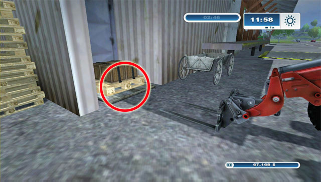 Compared to the mowing missions, these are much more diverse and appear in a few places. In each one of them, you have to take a pallet to a location marked on the map. Aim the fork at the holes in the pallet, lift it up and consult the map to see where you have to take it.