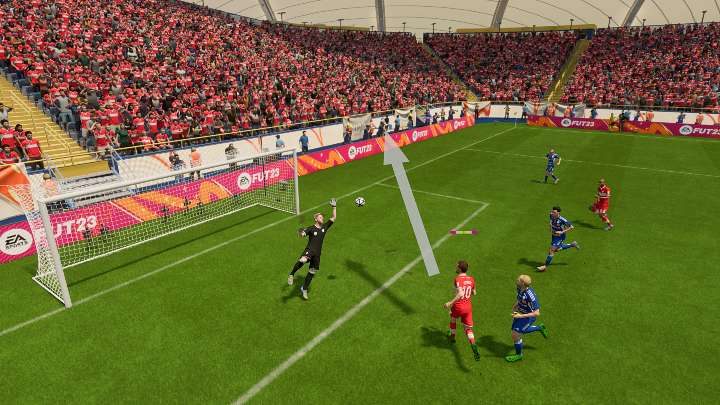 When the ball is flying at the right height, most players in FIFA 23 will try to perform a header. This type of play can happen primarily when you play the ball into the penalty area with a regular cross or when you are performing a free kick from the corner.