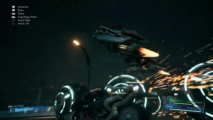 When the enemy lifts the wheels, drive away, or the impact will hurt you. When you destroy the wheels, the enemy will stagger and you can damage him a little bit. Use Spinning Slash to build up a huge multiplier. As the enemy prepares to attack you with fire, slow down and drive away from him to avoid damage.