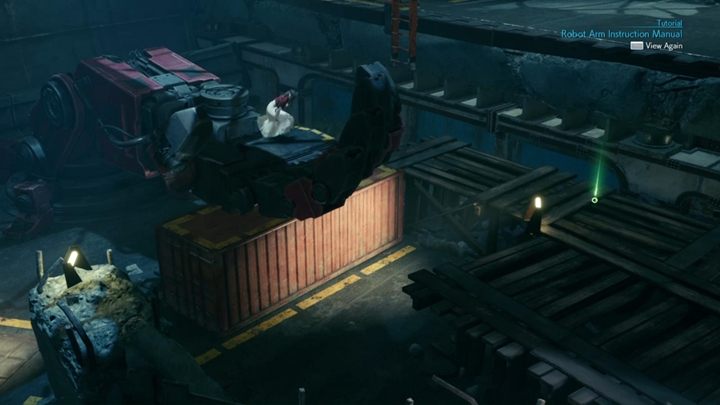 Follow Aerith - you're in for a fairly linear sequence with a few enemies. Eventually, you'll get to a big mechanical hand that you can control. Go to the console and control the hand so it stops over the yellow field. Select Offer Ride for Aerith to jump on the hand. Now move the woman up the hill next to her and choose Drop Off to get Aerith off and down the ladder. Climb higher and continue, fighting, among others, with sweepers (prone to lightning).
