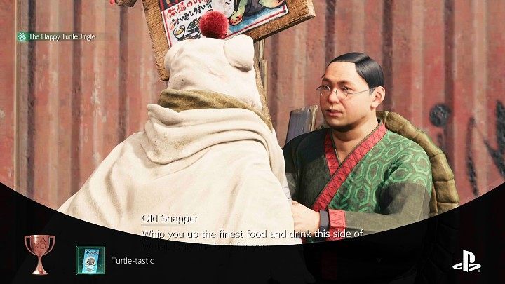- Notes: this trophy is connected to The Happy Envoy side quest, in which you need to find 6 Happy Turtle flyers for a man dressed as a turtle (Old Snapper)