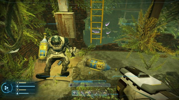 The Medium Oxygen Tank increases your Oxygen supply so that you can survive 150 seconds in the Underdust without refilling it. How to craft this item? First, you need to unlock access to the Medium Oxygen Tank research by scanning it. Two can be found in the Underdust, in the room on the first floor (picture above). To get there, you have to go over several boxes and footbridges.