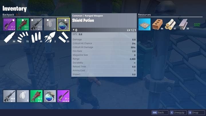 - Shield Potion - activates after 5 seconds and provides 50 shield points, up to the maximum of 100 shield points. In one inventory slot, you can carry as many as two potions.