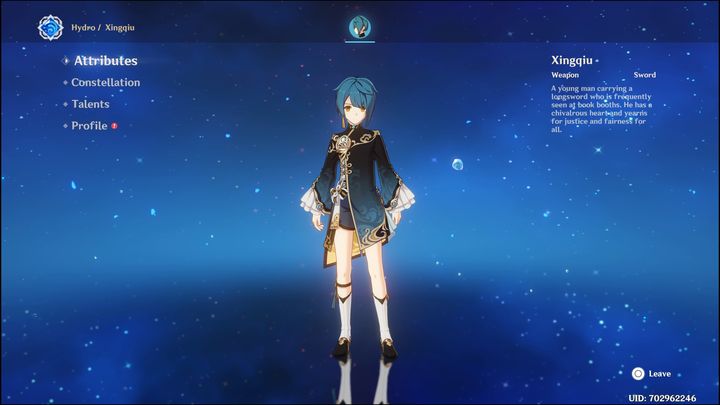 On this page of the guide to the game Genshin Impact, you'll learn all about Xingqiu, the character with the Hydro element. Here you can learn some basic information about the character, the role she is best suited to, how to build her correctly, and in what team she will fully utilize her potential.