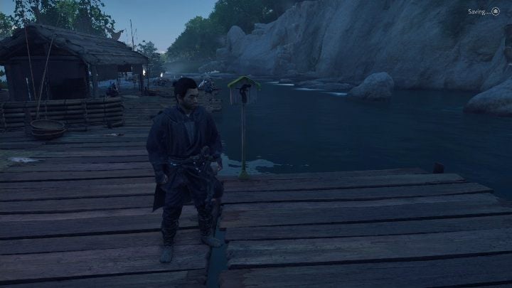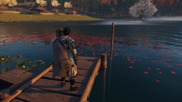 This hidden altar can be found right next to Omi Village. All you have to do is to leave it and head southwest along the lake. At some point, you'll come across a small pier. The altar is on it. When you bow before it, fish will jump out of the water.