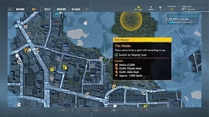 You can view the rewards for completing the particular quest in advance, including spirits (XP), Meika, magatamas or unique outfits variants. This will allow you to easily select missions that are worth completing first. However, keep in mind that the better rewards, the more challenging a given side mission can be, e.g. you might have to face an elite enemy.