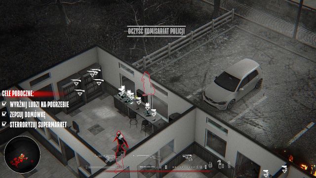 Leave the house and head South (you will pass a white vehicle along the way) to reach the next building. Inside, aside from cannon fodder, you will find a new weapon - Shotgun. To pick it up, you just have to run into it. The shotgun is, paradoxically, one of the worst weapons in the game (aside from using it on an extremely short range), because it does not deal enormous amounts of damage, and the long reload time (sometimes going over 5 seconds!) may expose you to the enemy gunfire without any means of countering it. After picking up the collectible, leave the building and head south, ignore the building (there is nothing to pick up here) and enter the next house you stumble upon - there is another Shotgun hidden inside. Additionally, prepare for the first portion of policemen and some exchange of fire.