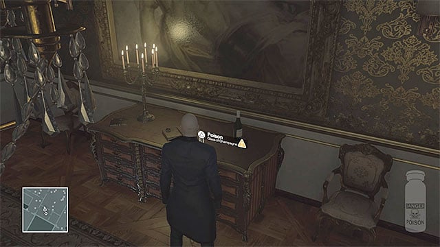 Get back to the bar while wearing the newly acquired outfit and pour the poison into a glass of champagne. You now have to wait by the bar until Dalia reaches and place and takes a sip of the drink. Depending on the time you've reached the bar, Dalia can either appear shortly afterwards, or you have to be patient.