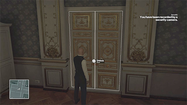 Sheikh Salman al-Ghazali is one of the VIP guests located on the map. You can take his identity, but you must do so quickly, before the man reaches the auction. Sheikh's apartment can be found in the northern section of the building, on its second floor (point M3,7 on the map). The entrance to the apartment is watched by a guard - you can avoid any trouble with the guard, provided that you have the same type of outfit. If you don't want to waste time looking for an outfit, you can enter the room adjoining his private chambers and try to open the closed door. You can use a lockpick (which must be selected as a starting equipment for Agent 47 at the beginning of the mission), or a crowbar in order to do so (the crowbar can be frequently found while exploring the map).