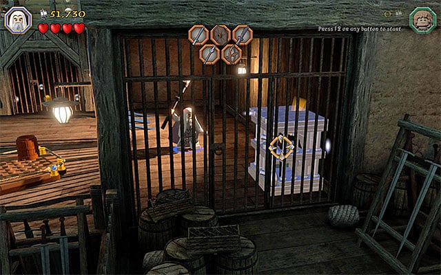 Way to obtain: After you gain access to the cage on the right, which is at the armory's lower level, you need to switch to Saruman and use Saruman's Staff to smash the mithril objects here. This will allow you to pick up the collectible.