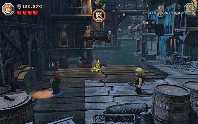 Way to obtain: While chasing after Bolg, stop in the part of the docks shown in the above screenshot. Switch to the goblin here and grab on to the interactive wall, thanks to which you will reach a place with the minikit.