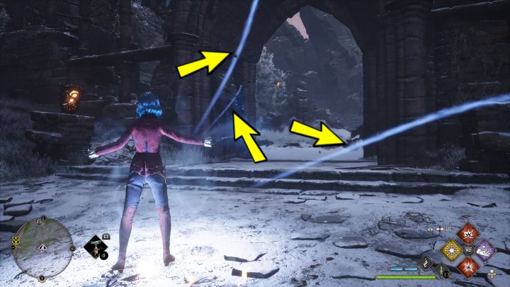 After reaching the vicinity of an Ancient Magic Hotspot, follow the traces that appear on the ground, then investigate the Hotspot. Once interacted, 3 blue lines will spring out from the Hotspot, which you need to follow and collect the magic bits at the end of each of them.