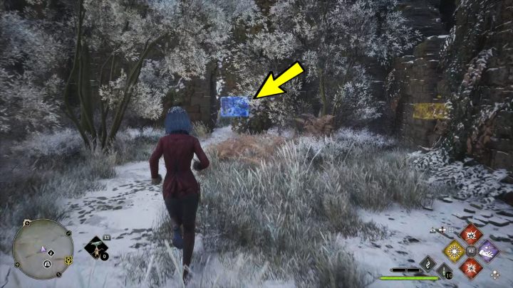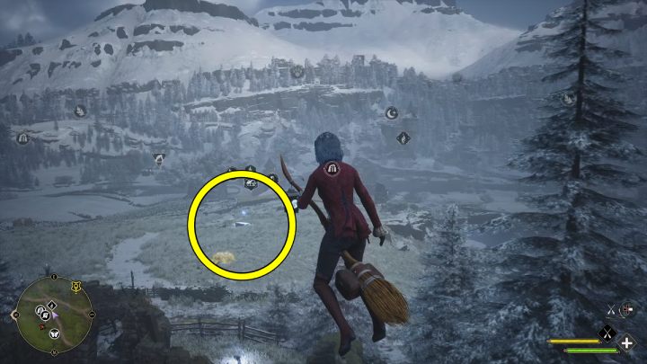 Interact with the statue next to the door on the right and continue forward. Turn left and pick up the second object. Alternatively, you can fly up to this area with broom.