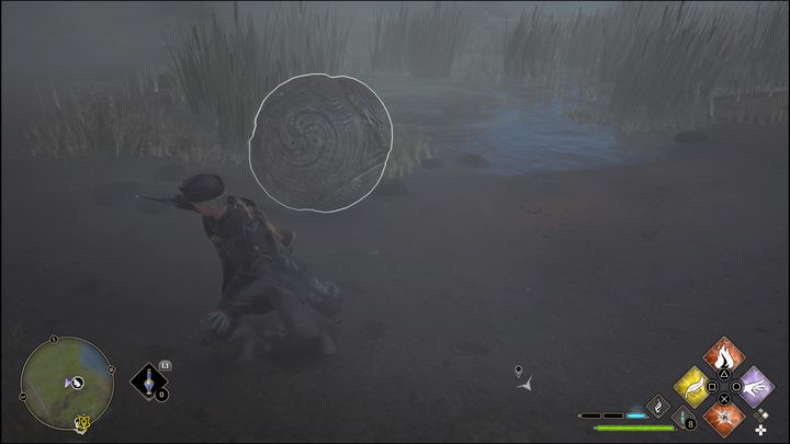 This Merlin Trial can be found by going east from the Lower Hogsfield Floo Flame location. This is the first attempt at Merlin Trials, which is also a quest. The entire quest is described in detail in the Merlin Trials page of the walkthrough chapter.