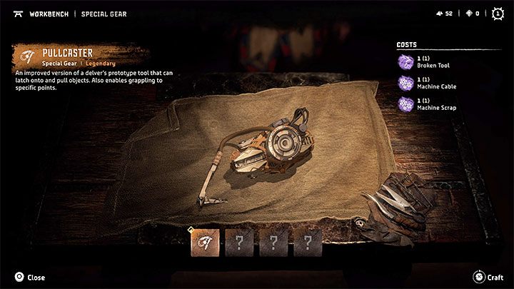 There's a workbench in the camp - approach it and interact with it. Enter the Special Gear tab. Now craft a Pullcaster.