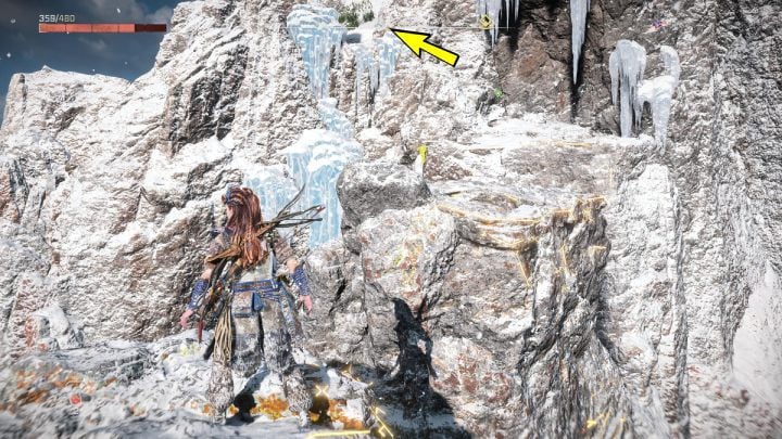 Keep climbing once you've killed the macines. Scan the area and walk up the rock with icicles. Then climb up the rock on the left, and when you won't be able to go on because of the ice, jump over to the opposite rock.