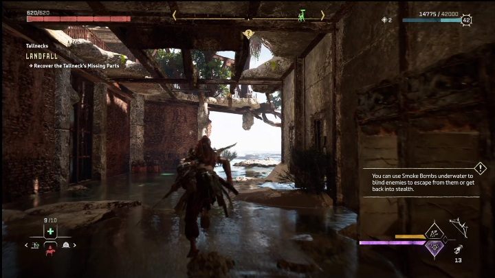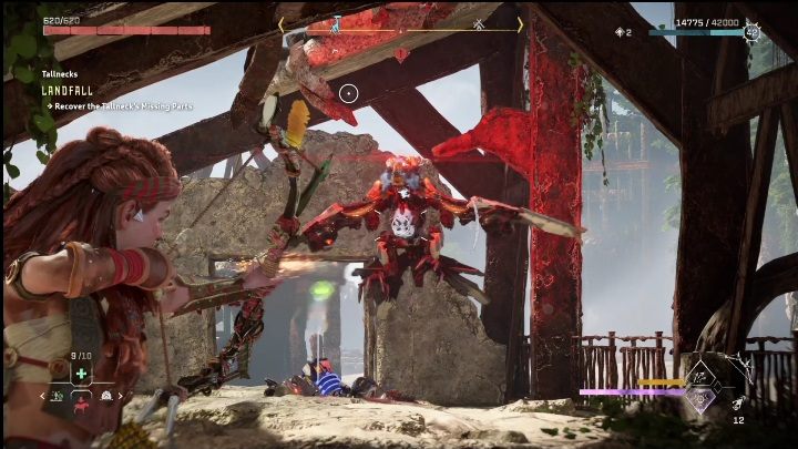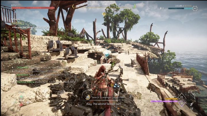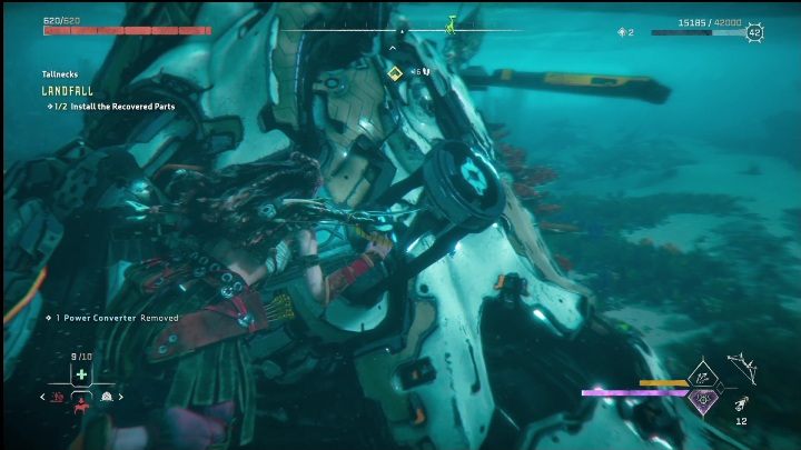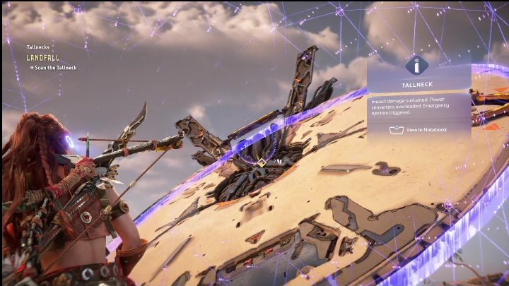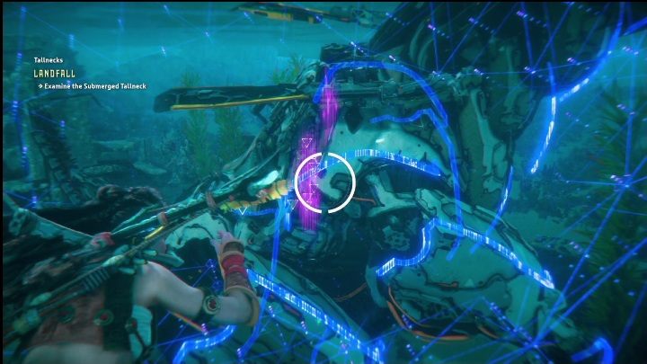 Then head inside and investigate the two empty spaces. Aloy will immediately discover that the Tallneck is missing parts which are necessary for it to function.