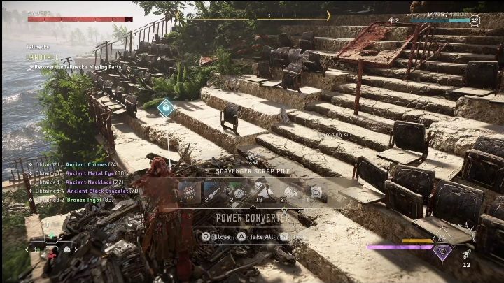 Next, turn to the right. Jump over to the final section of the ruins and search through the pile of items. You will find one of the parts you need here.