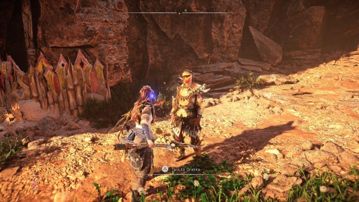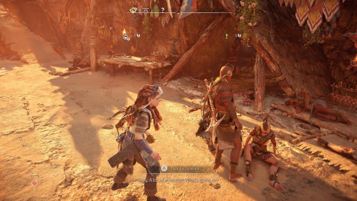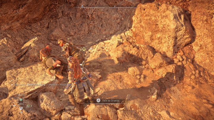 After eliminating the Thunderjaw, approach the survivor and talk to Drakka