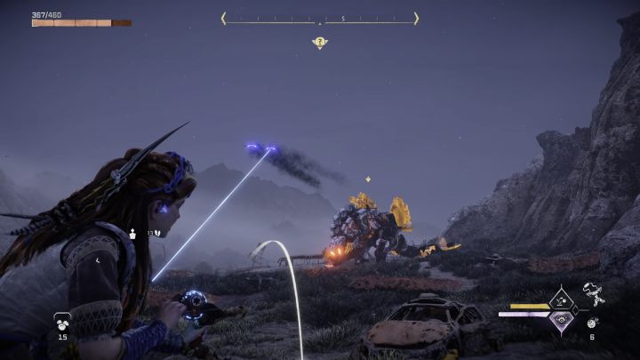 There will be 4 machines in the combat zone, 2 Ravagers and 2 Fanghorns. We recommend that you eliminate the Fanghorns first so that they don't disturb you in the battle.