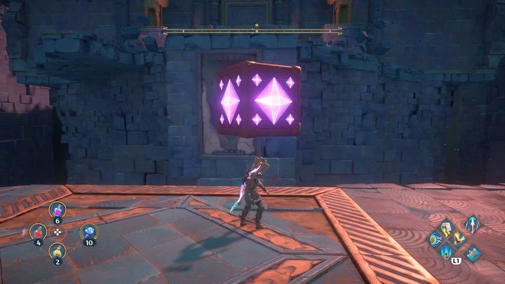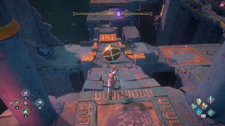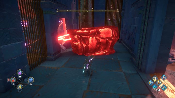 At the checkpoint you will notice 5 chains and a sculpture of a monster. You have to break the five chains to release it. Start from destroying the red stone right ahead of you. Then head to the right.