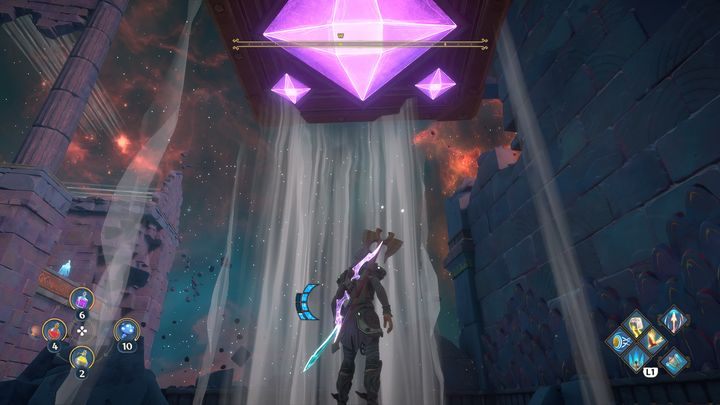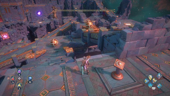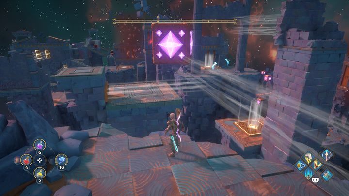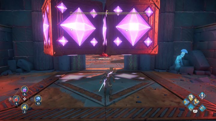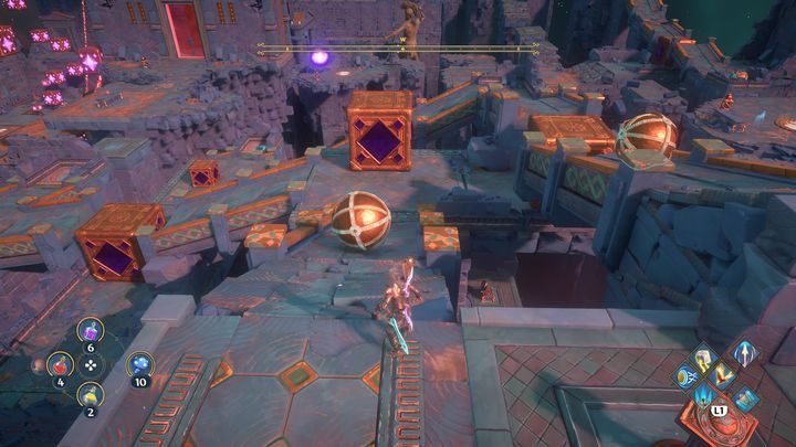 In the end, the two spheres should reach their required destination and cause the red barrier to disperse. Continue on and destroy the red stone.