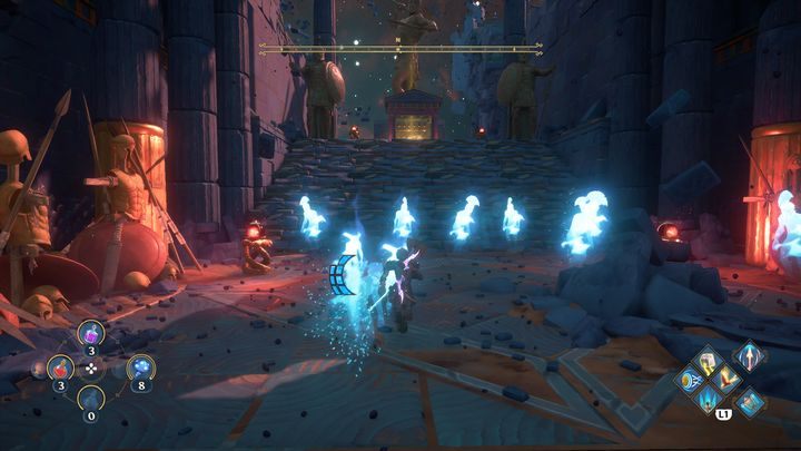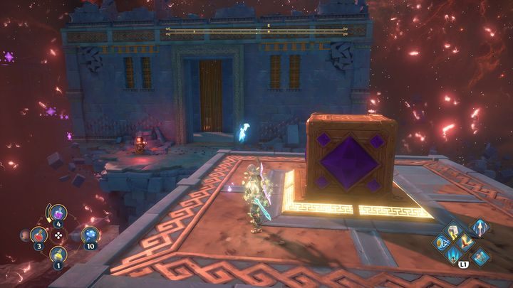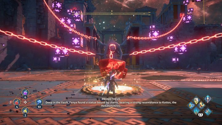 Head inside and destroy the last chain. Now it's time to walk up to the sculpture. This will initiate the boss battle against Kottos the All-Seeing. A walkthrough of the boss fight can be found on a separate page of the guide.