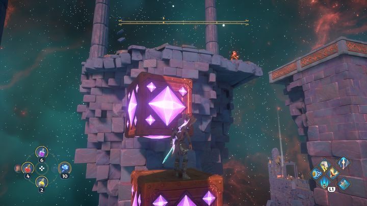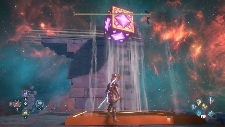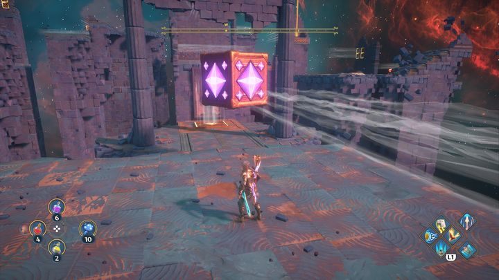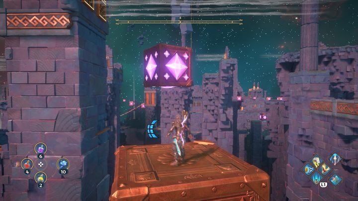 When the sphere finds itself in its proper place, you will create more cubes. To the right of the checkpoint you will find a chest, fly towards it to obtain the rewards (see the attached image).