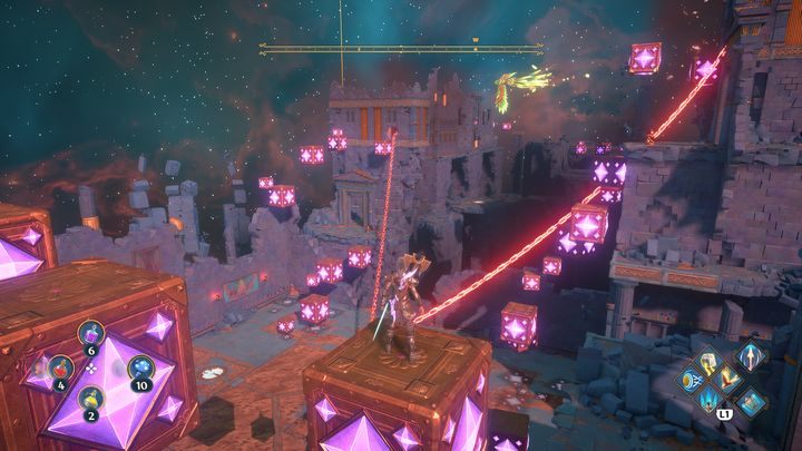 Arrange them so that you can head upwards. If you encounter any issues, use the Heracles's Strength power to summon the cubes back to you.
