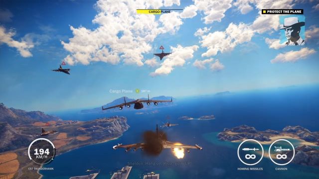 Decrease your speed a little bit to get around 150-200 meters behind the plane you must protect and then start eliminating the enemy jets. Use the homing rockets to get rid of them quickly and easily - in most cases a single rocket is more than enough to take out the plane. Remember to refrain from shooting when the enemy is close to the cargo plane - it's easy to damage the wrong target if you're not careful.