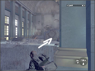 Start moving forward. You won't have to secure the bunkers where the members of The7 organization were hiding. One of the enemy soldiers is standing just around the corner (screen). You can take him out yourself or you can order your men to kill him. Keep heading towards your current destination.