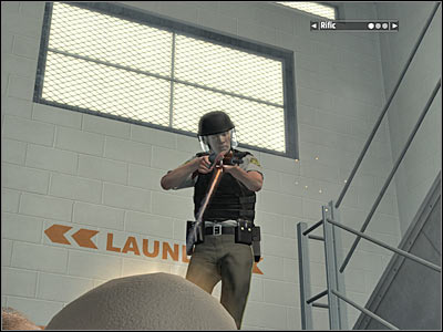 Obviously you will be allowed to issue orders to Thapa. I would recommend being more careful from now on. You should also consider picking up more weapons in order to give them to your colleagues. Make a few steps forward. A new group of prison guards will appear in front of you. As you've noticed, they're heavily equipped. Use nearby objects for much needed cover. You will have to kill all of them in order to be able to leave the laundry area.