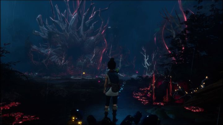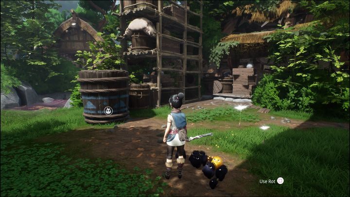 In combat, you can use Rot's true form. At first it may seem hard to control Kena and Rot, but it's worth learning how to fight this way. In this form, Rot deals a lot of damage, and you will have to face numerous enemies of both the smaller and bigger, more powerful varieties. In the meantime, destroy the obstacles, because behind one of them, there is a healing object.