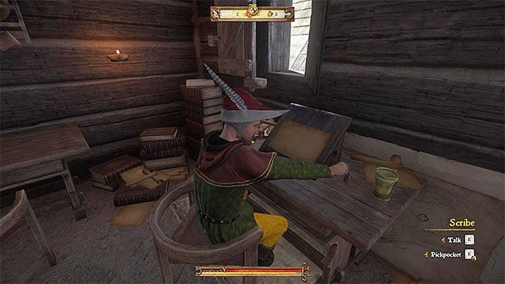 - Find the Scribe in Uzhitz (the village's center) and speak with him about reading lessons. You will have to pay him 50 Groschen.