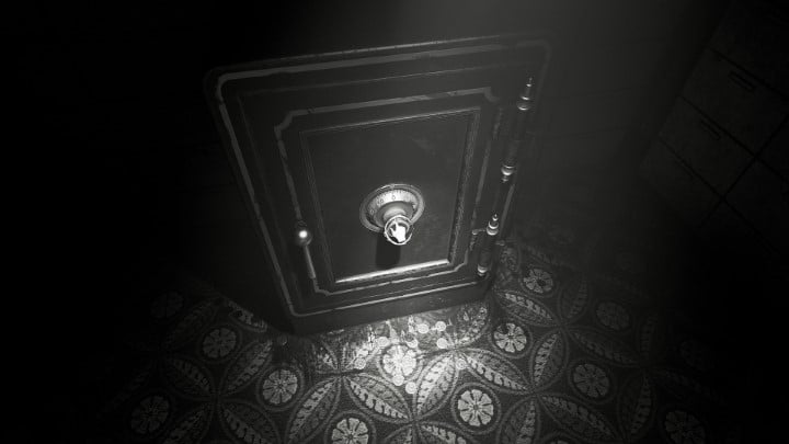 To enter the next room, enter the nearby room and focus the light on the mannequin. The needed code for the padlock will appear on the other side of the board. The combination is 7-9-0.