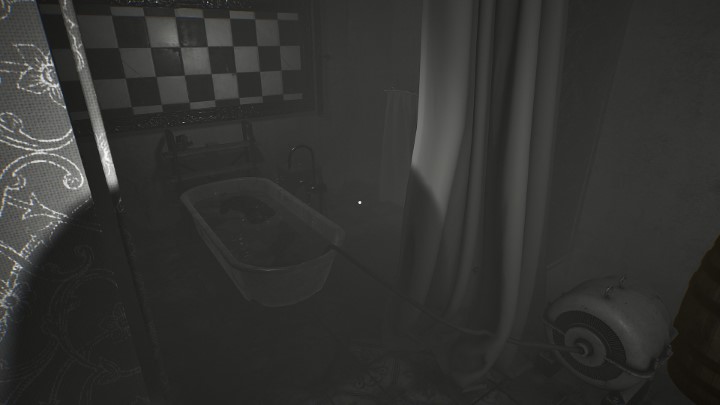 You'll enter a black-and-white sequence - approach the suitcases, and in one of them, you'll find a flashlight. Using it is similar to the lantern from Act I of the game - you activate the beam by pressing RMB, and focus the beam by pressing LMB.