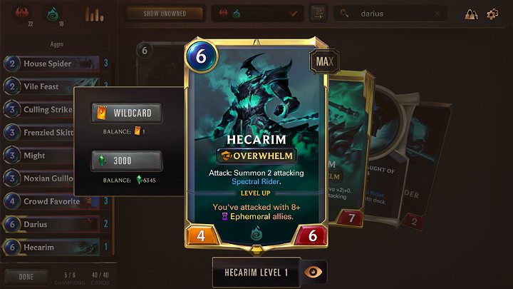 - Level Up - Hecarim advances to a higher level when you will attack with at least 8 units equipped with Ephemeral keyword.