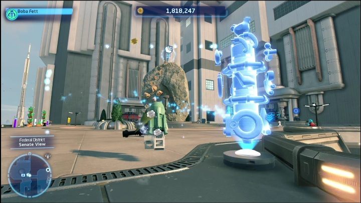 The next part can be found under the footpath. To get there, simply leap down and head to the lowest floor, which is simplest if you double jump (just click the jump button again). Using a character with a glider or a jetpack, such as Boba Fett, is also recommended.
