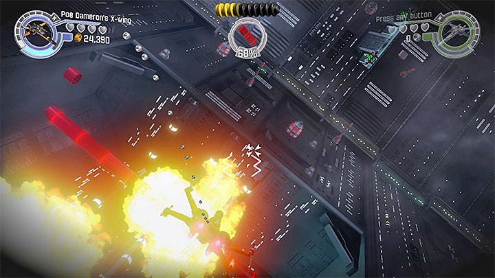 You start this chapter with an air battle in the cockpit of Poe Dameron's X-Wing. The objective here is to destroy the last oscillator. In the first phase of this battle, you will have to destroy fifteen enemy TIE Fighters. You can engage them in any order you want. In the course of the battle, perform barrel rolls and sideways tilts to dodge their fire.