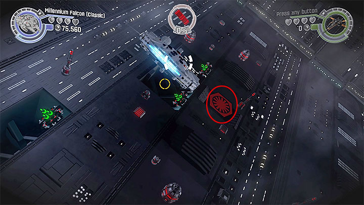Location and how to unlock: You can obtain this minikit either in the story mode or in the free game mode. You have to fly up to the spot, where you have to pounce on red pipes, thanks to which you fill up the damage meter. IGNORE the pipes at first and try to shoot at the red symbols of the First Order. One of such symbols has been shown in the above screenshot. You have to shoot three such symbols.