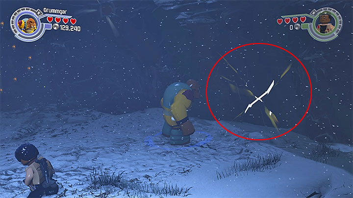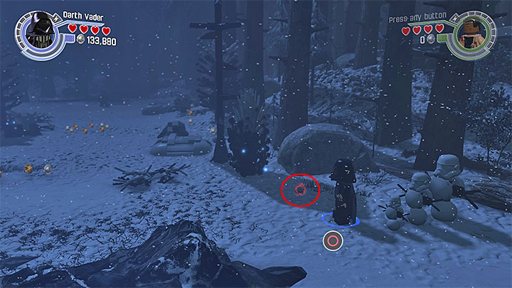 Location and how to unlock: You can obtain this red LEGO brick right after the last phase of the battle with Kylo Ren starts. Start in the spot where you have made the third snowman. Here, you find a snowball shown in the above screenshot. Interact with the snowball as a character that uses either the light or the dark side of the Force.