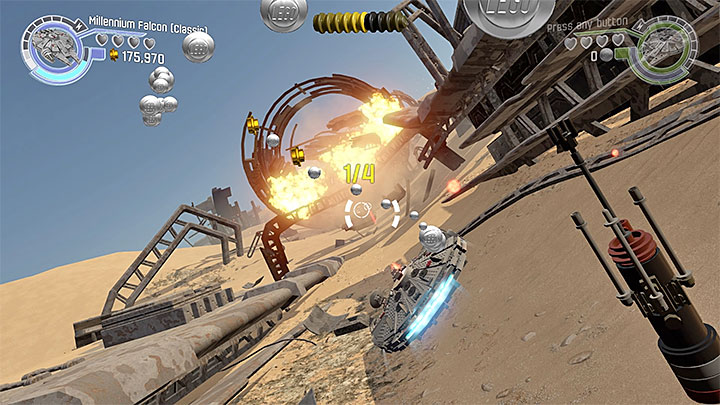 Location and unlocking method: the minikit can be acquired in the story mode, as well as in the free roam mode. When you start the controlled section on board of the Millennium Falcon, you must destroy four bridges along the way. You can achieve this by shooting constantly - thanks to that you won't miss any bridge.