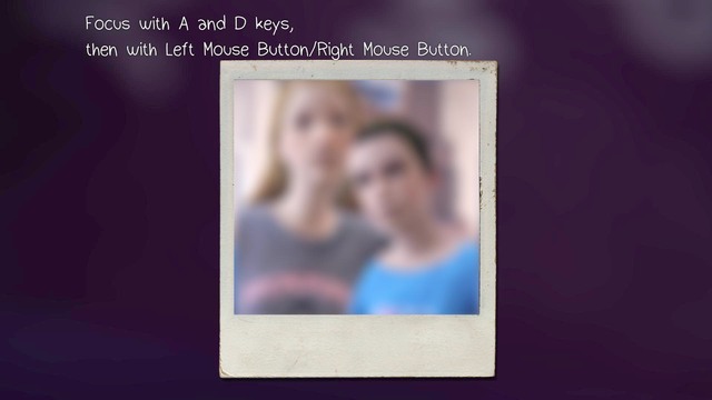 After the conversation and examining the photo, you will discover something interesting in it. The above picture shows the situation in which you have to set the right focus on the photo. In order to do that use the pairs of buttons as prompted on screen. First, adjust the picture with A and D keys, then with Left and Right Mouse Button for the maximum focus.