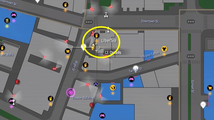 Travel to Twilight Dr. in Cultural District. Look for a neon sign with an arrow attached to a wall of one of the northern buildings.