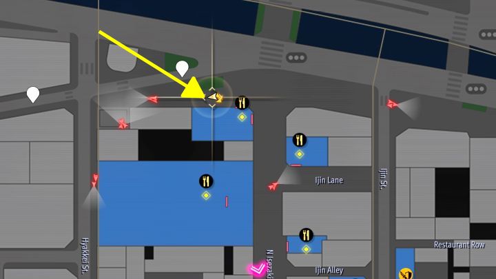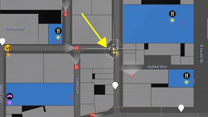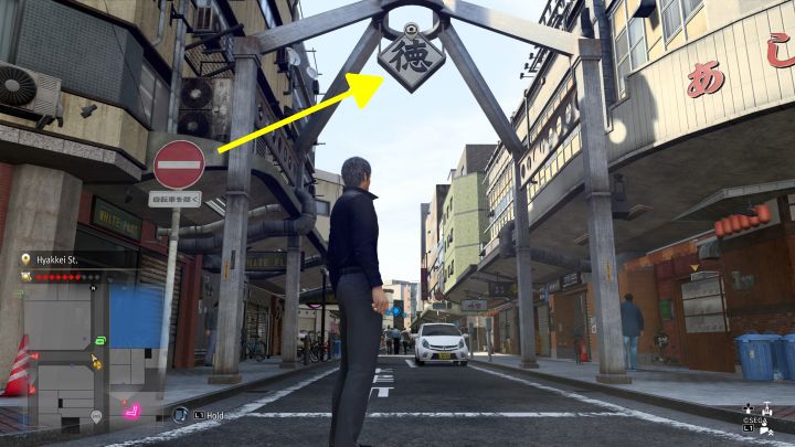 You need to reach a large metal structure in Koreatown, on Hyakkei St. Take the photo of a logo on top of the structure - we mark it in the screenshot above.