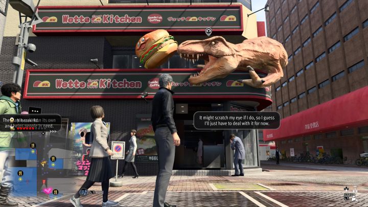 Travel to Wette Kitchen on N Isezaki Rd. in Downtown. You need to photograph a large T-Rex above the entrance to the restaurant.
