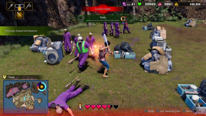 - At first, Kasuga has only 3 hearts on his health bar. Losing all of them will result in you being sent home and losing a few Dokobucks.