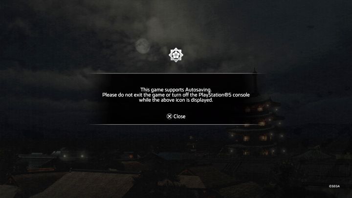 Like a Dragon: Ishin features an automatic system of saving your game. Autosave is indicated by a specific icon appearing on the screen.
