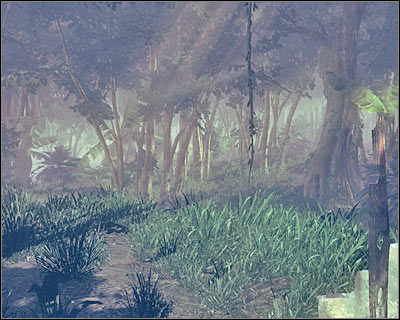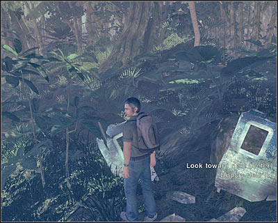 Once the black smoke has left, exit the hideout and examine the new fragment of the plane. The next object is nearby, so you shouldn't have any problems finding it (screen). Examine this fragment. Don't worry if you can't see your destination from here. Just make sure that you're running in a straight line. You will come across a large tree along the way, so you'll know that you've chosen a correct path.